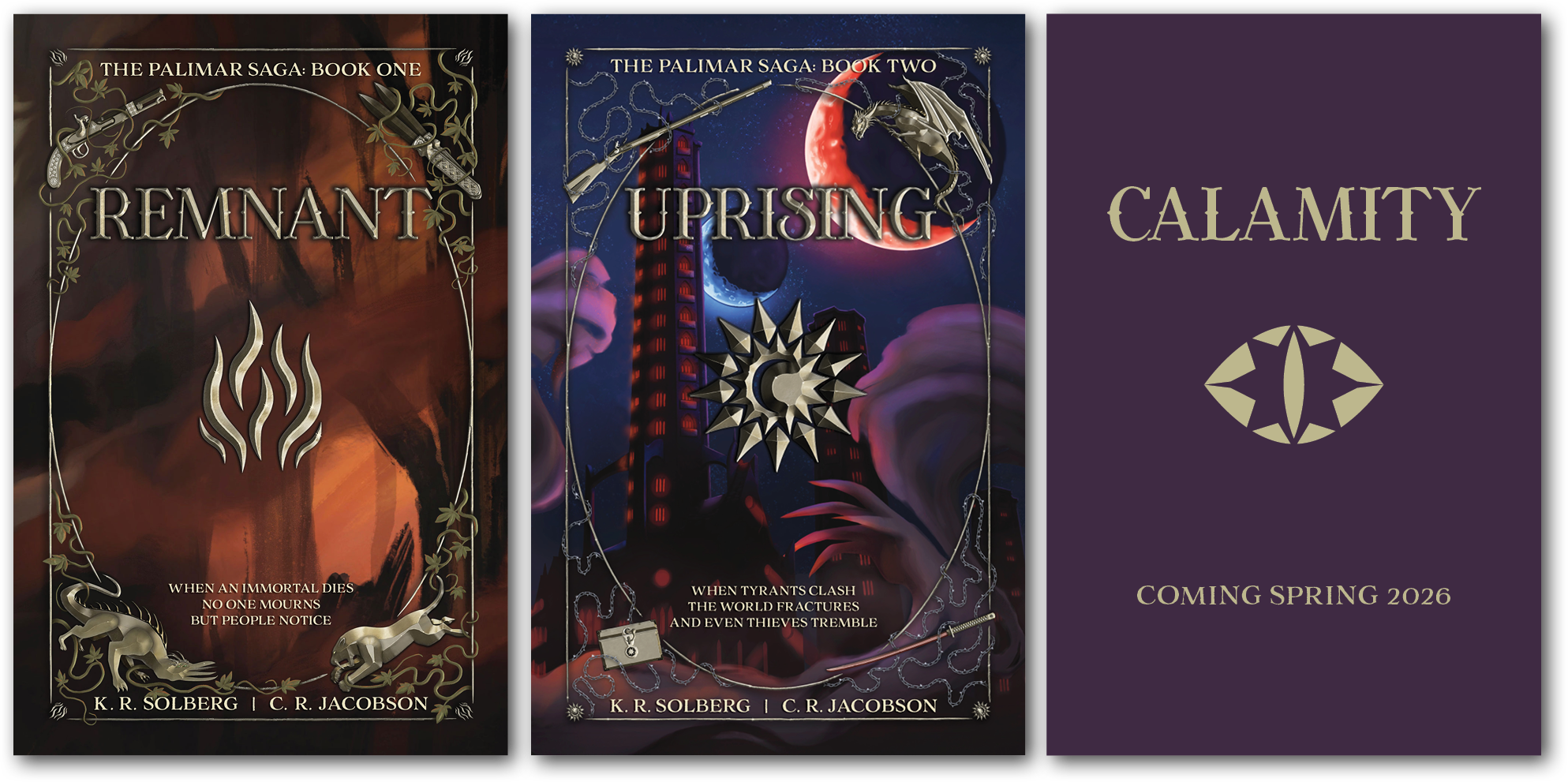 K. R. Solberg & C. R. Jacobson are the daughter-mother writing team behind the fantasy series, The Palimar Saga. Together, they write gripping stories and argue about homophones.